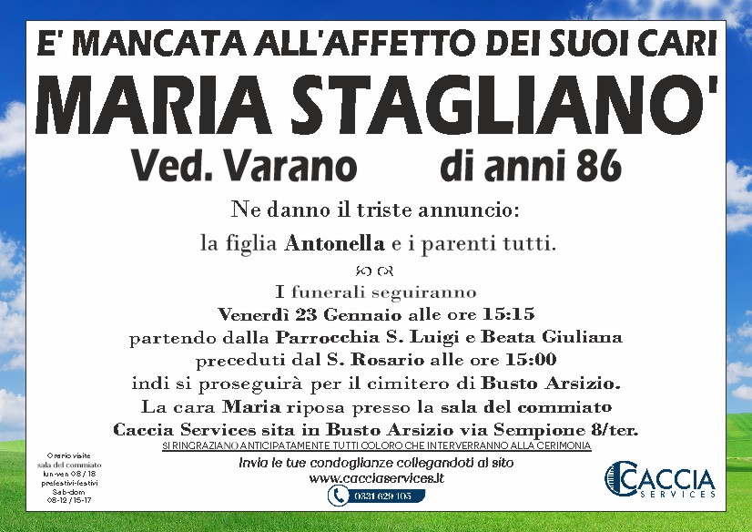 Home page \ I necrologi \ MARIA STAGLIANO'