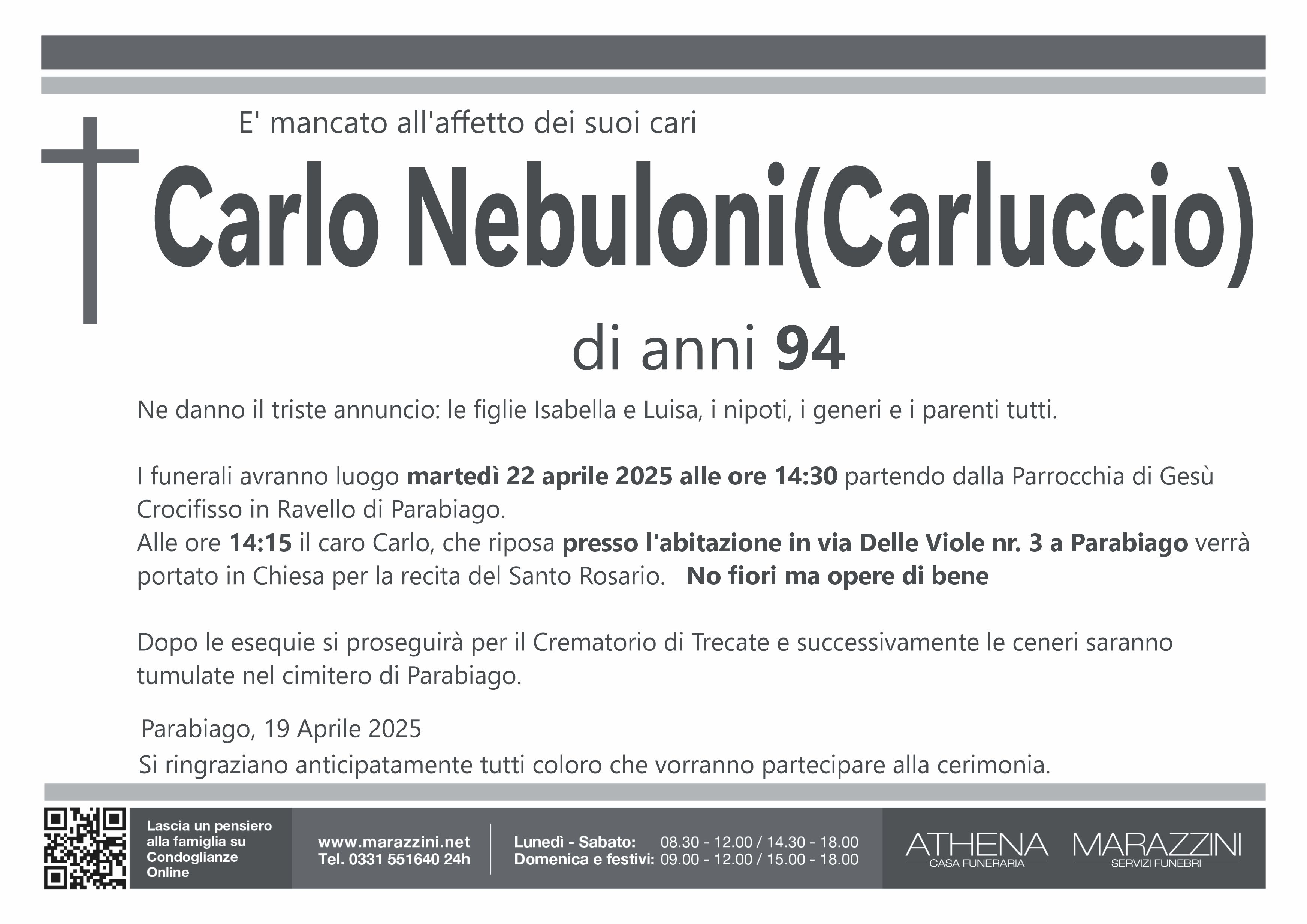 Home page \ I necrologi \ CARLO NEBULONI