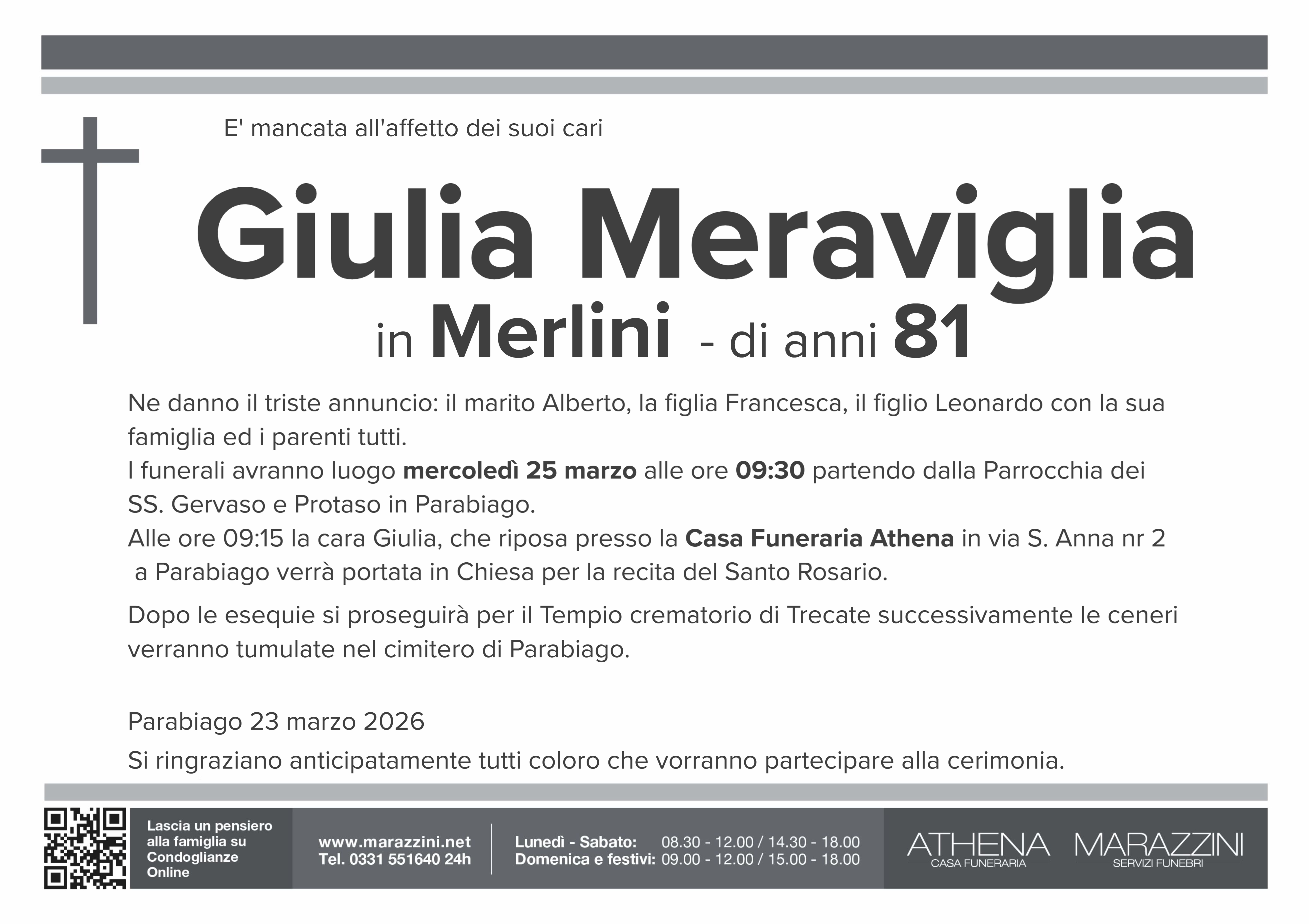 Home page \ I necrologi \ GIULIA MERAVIGLIA
