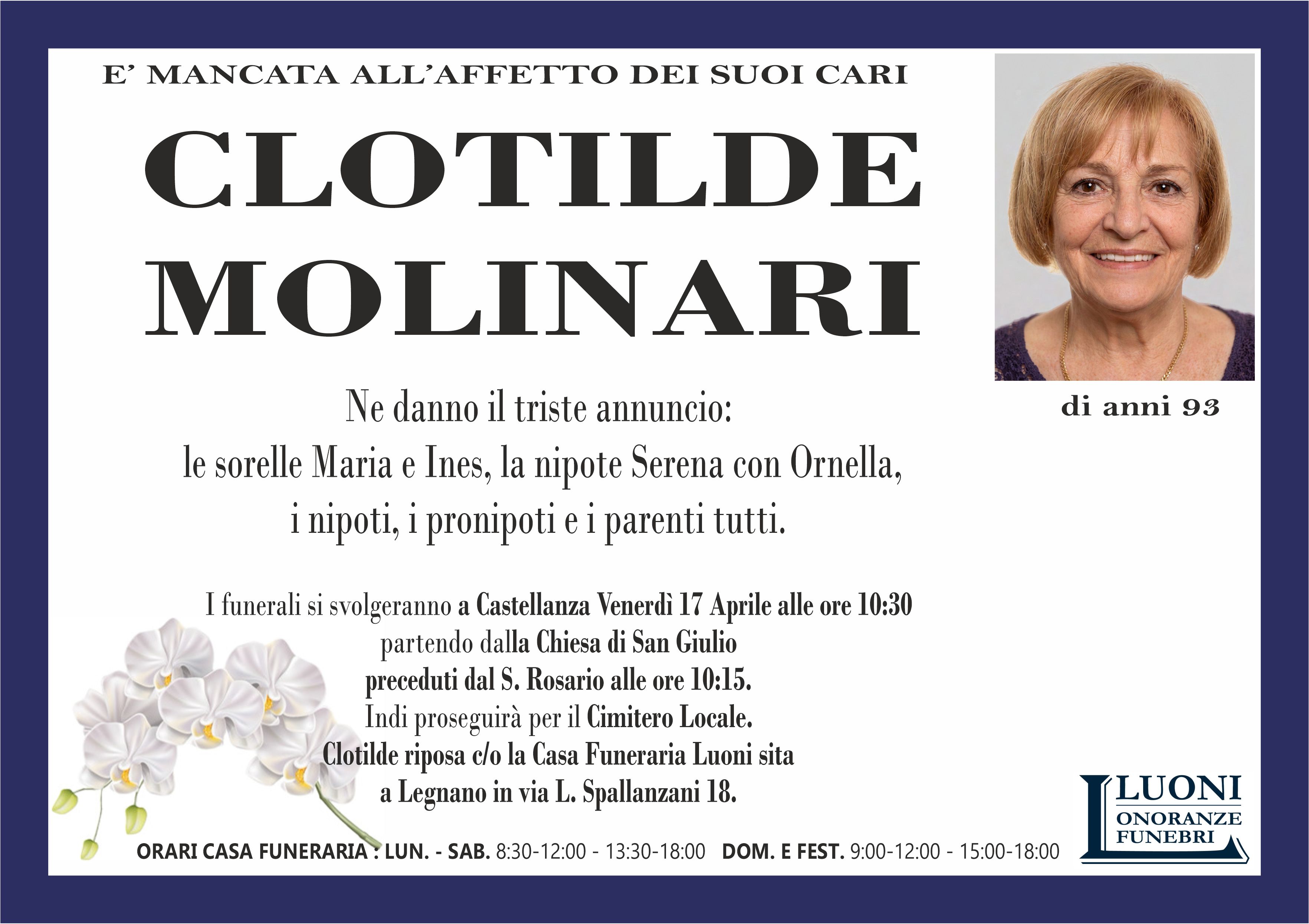 Home page \ I necrologi \ CLOTILDE MOLINARI