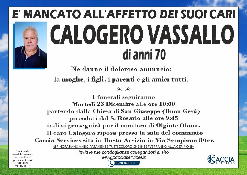 Home page \ I necrologi \ CALOGERO VASSALLO