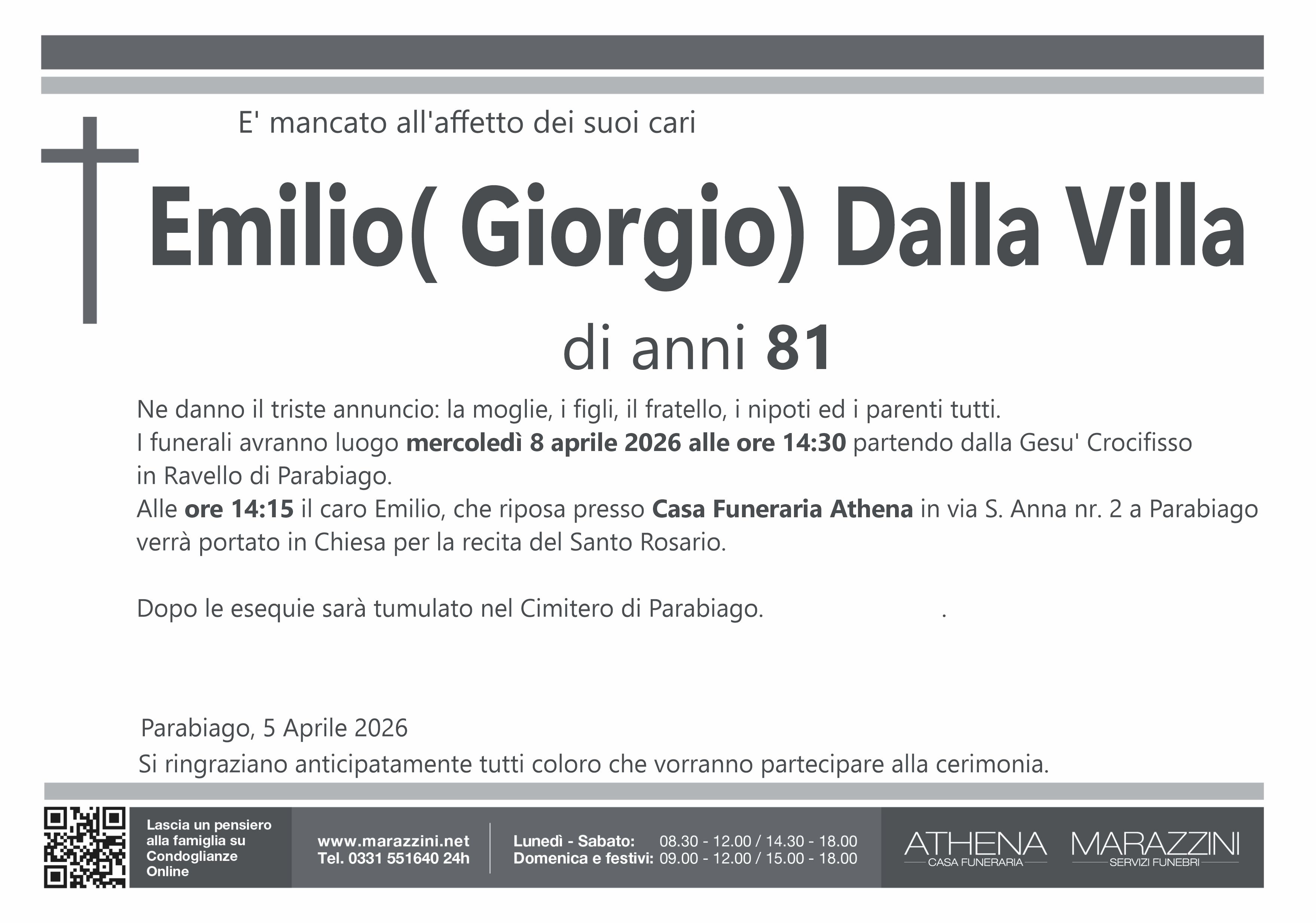 Home page \ I necrologi \ EMILIO DALLA VILLA