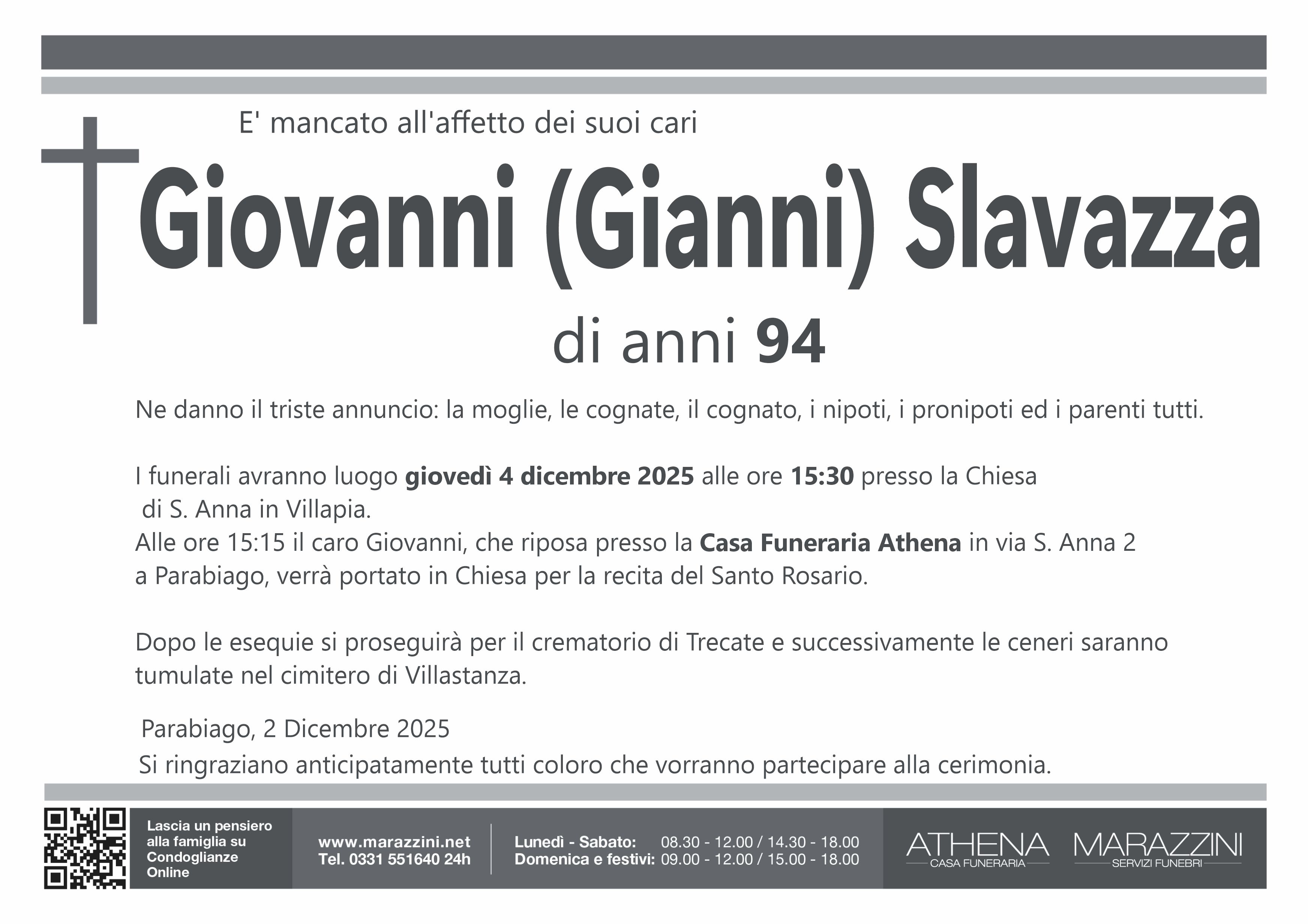 Home page \ I necrologi \ GIOVANNI SLAVAZZA