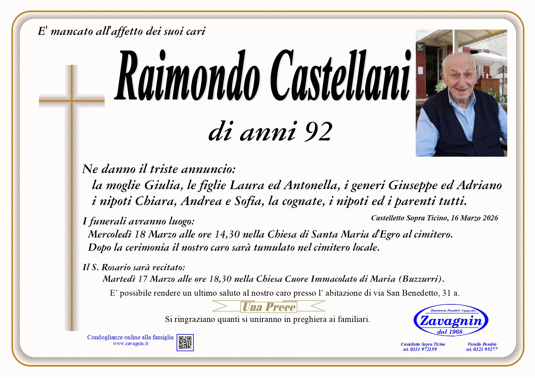 Home page \ I necrologi \ RAIMONDO CASTELLANI