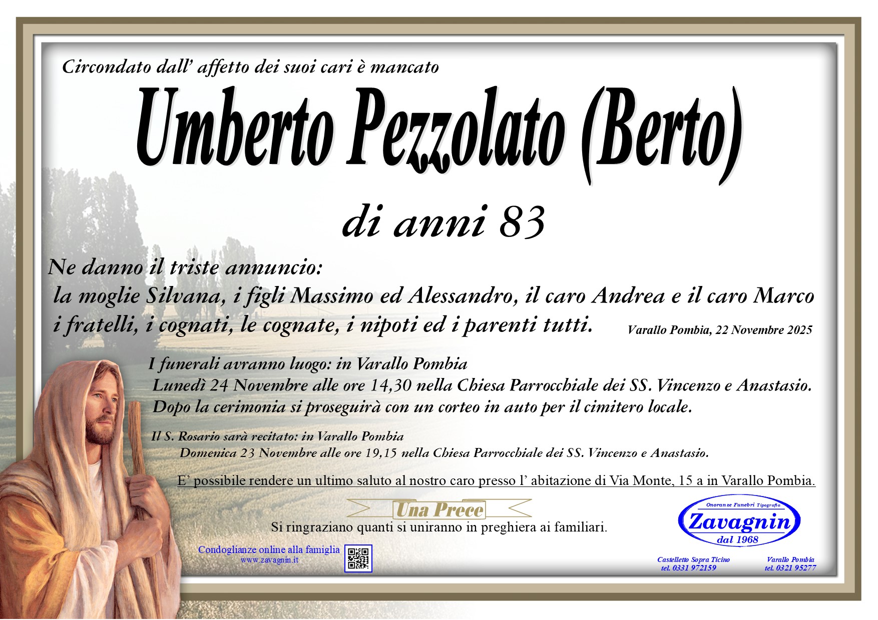 Home page \ I necrologi \ UMBERTO PEZZOLATO