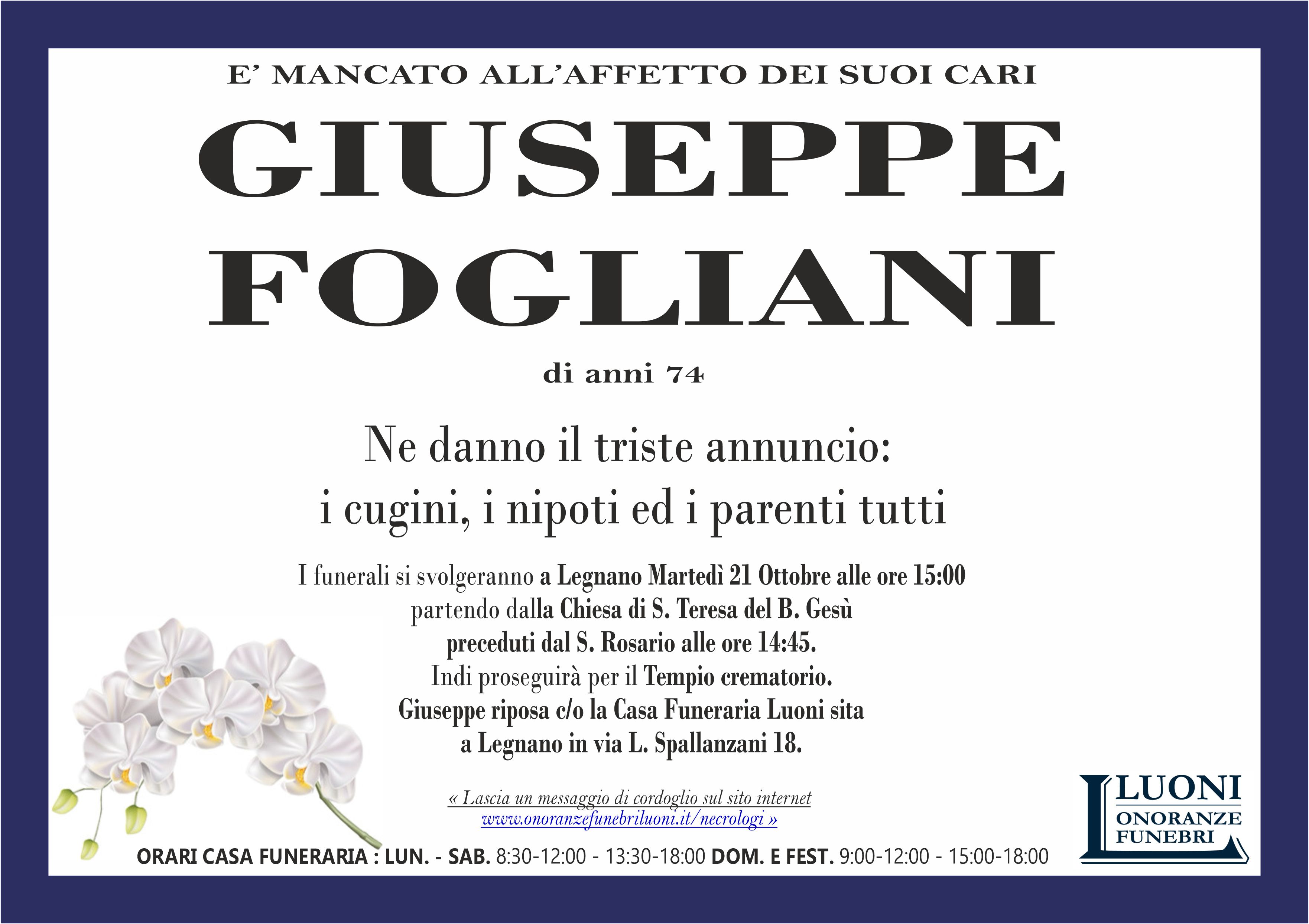 Home page \ I necrologi \ GIUSEPPE FOGLIANI