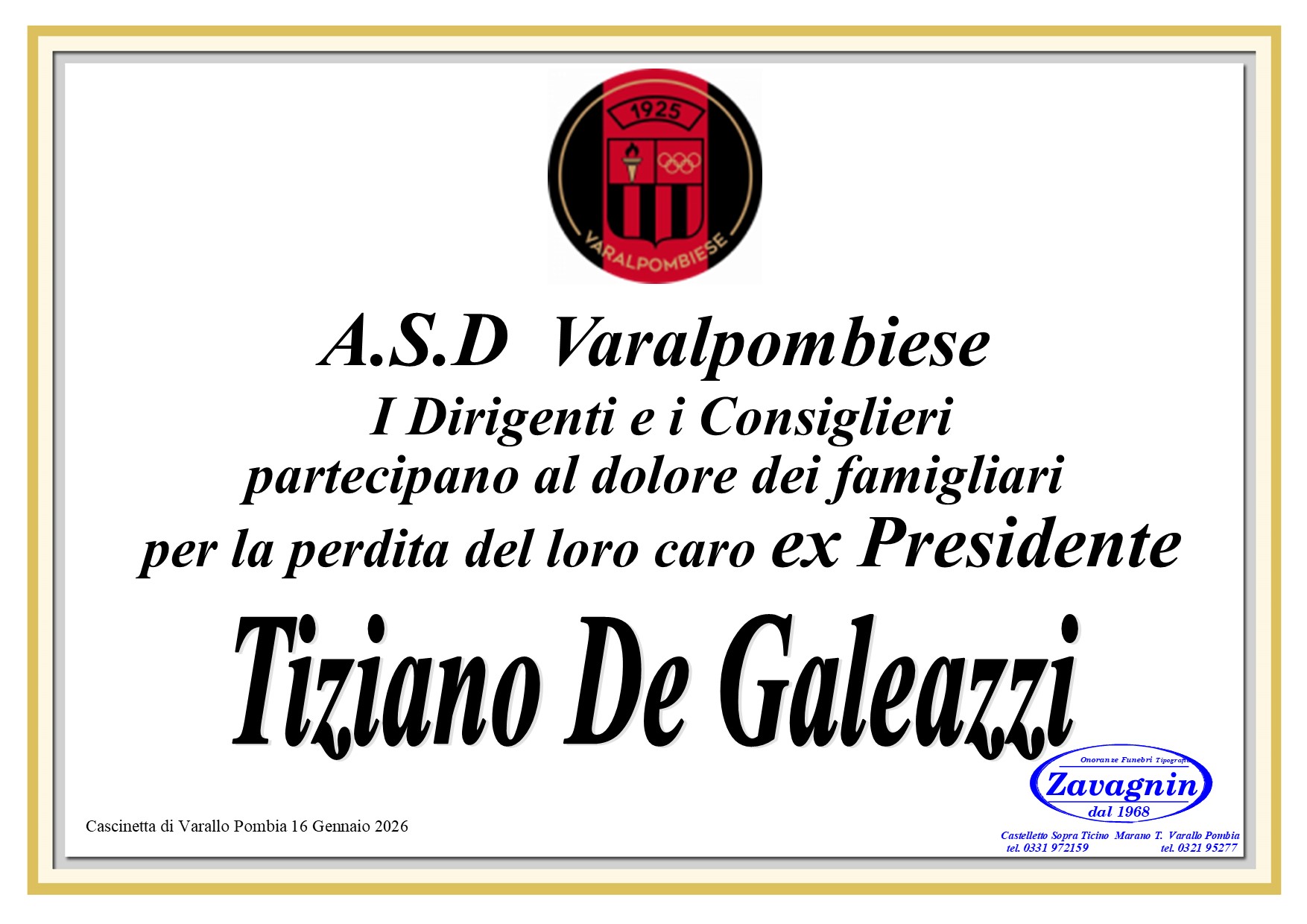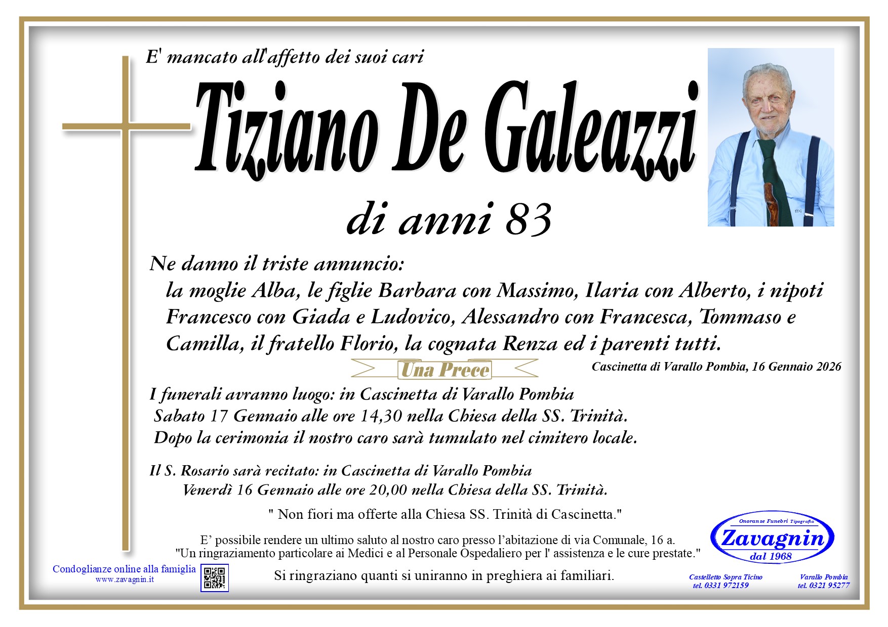 Home page \ I necrologi \ TIZIANO DE GALEAZZI