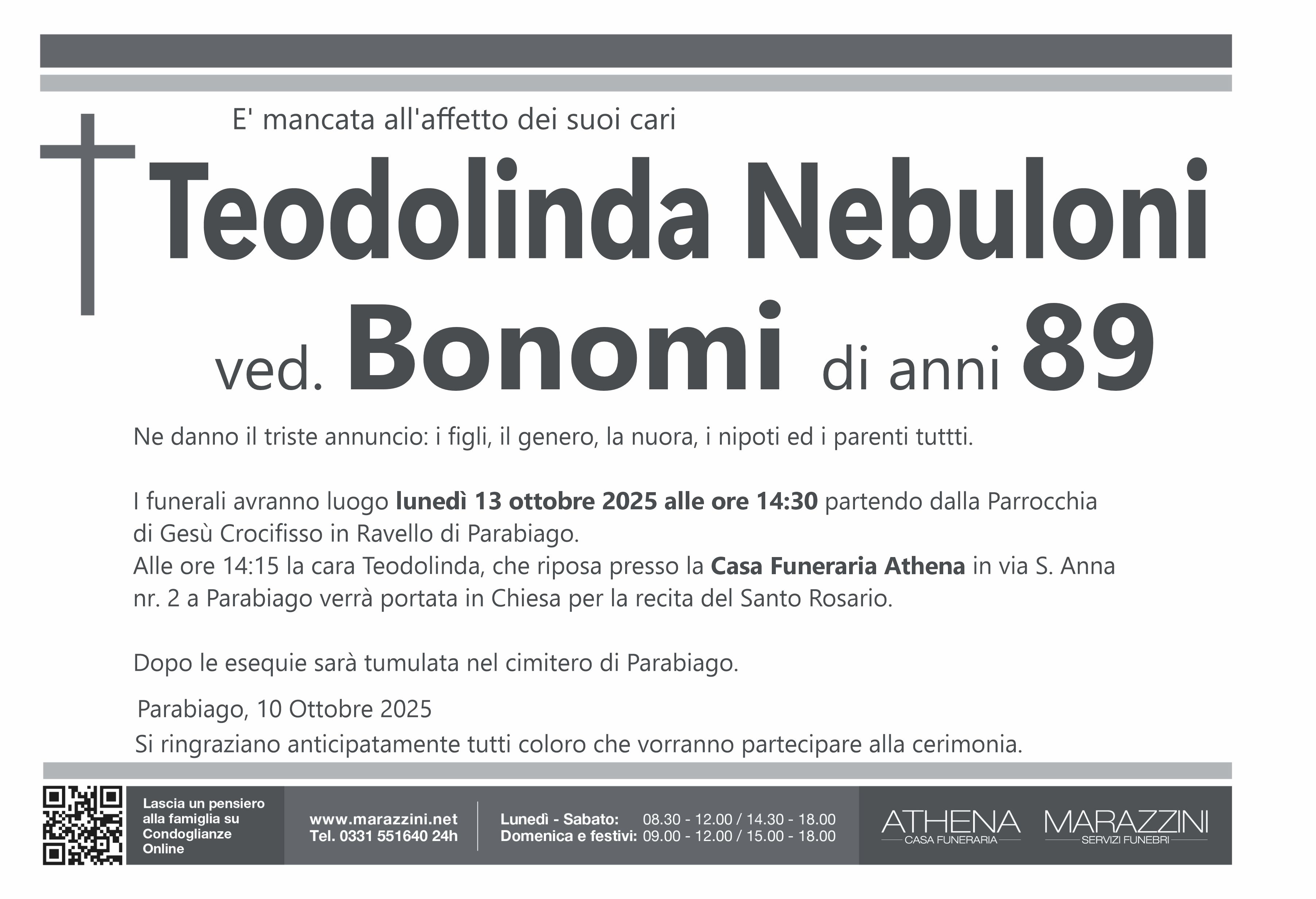 Home page \ I necrologi \ TEODOLINDA NEBULONI