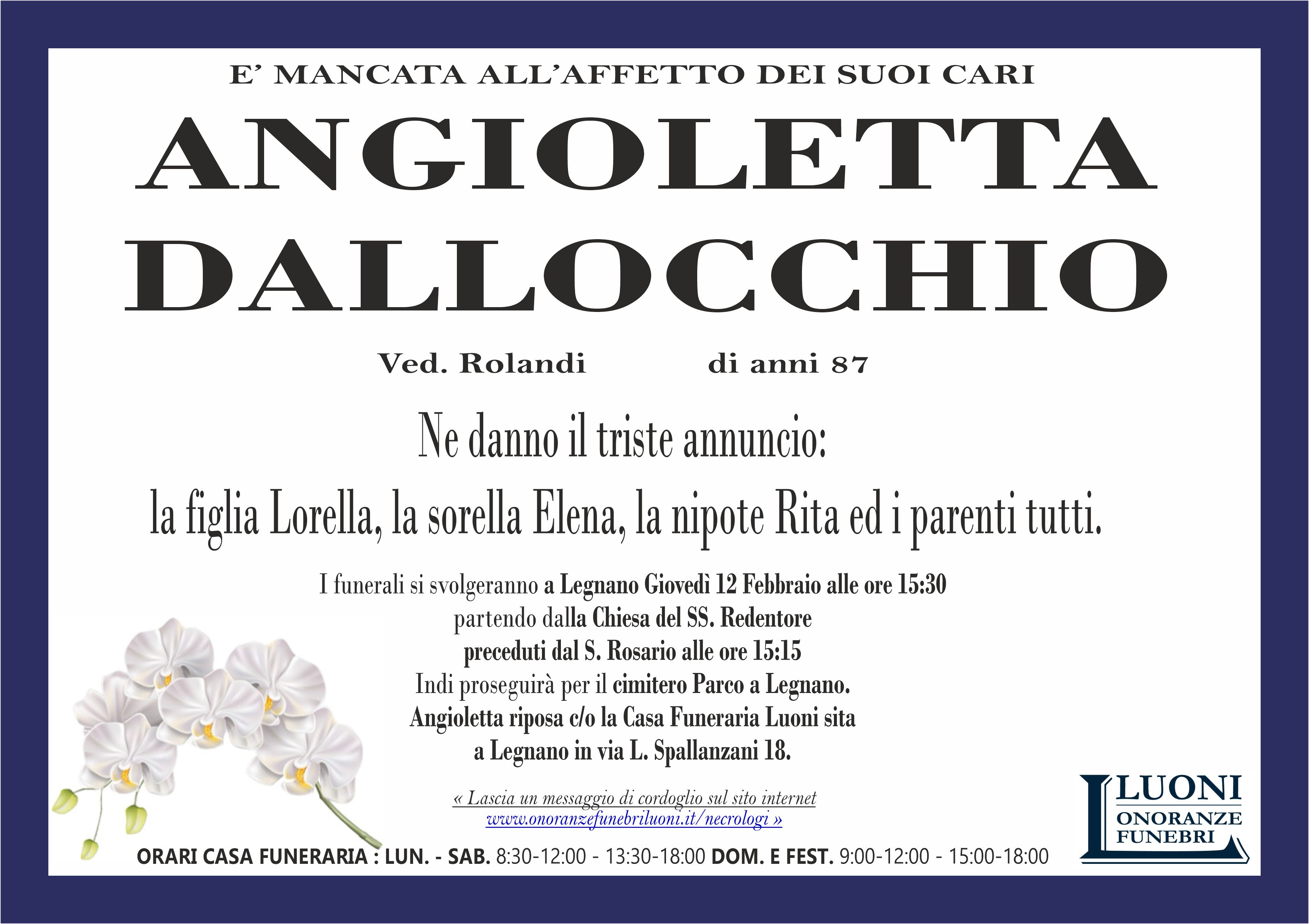 Home page \ I necrologi \ ANGIOLETTA DALLOCCHIO
