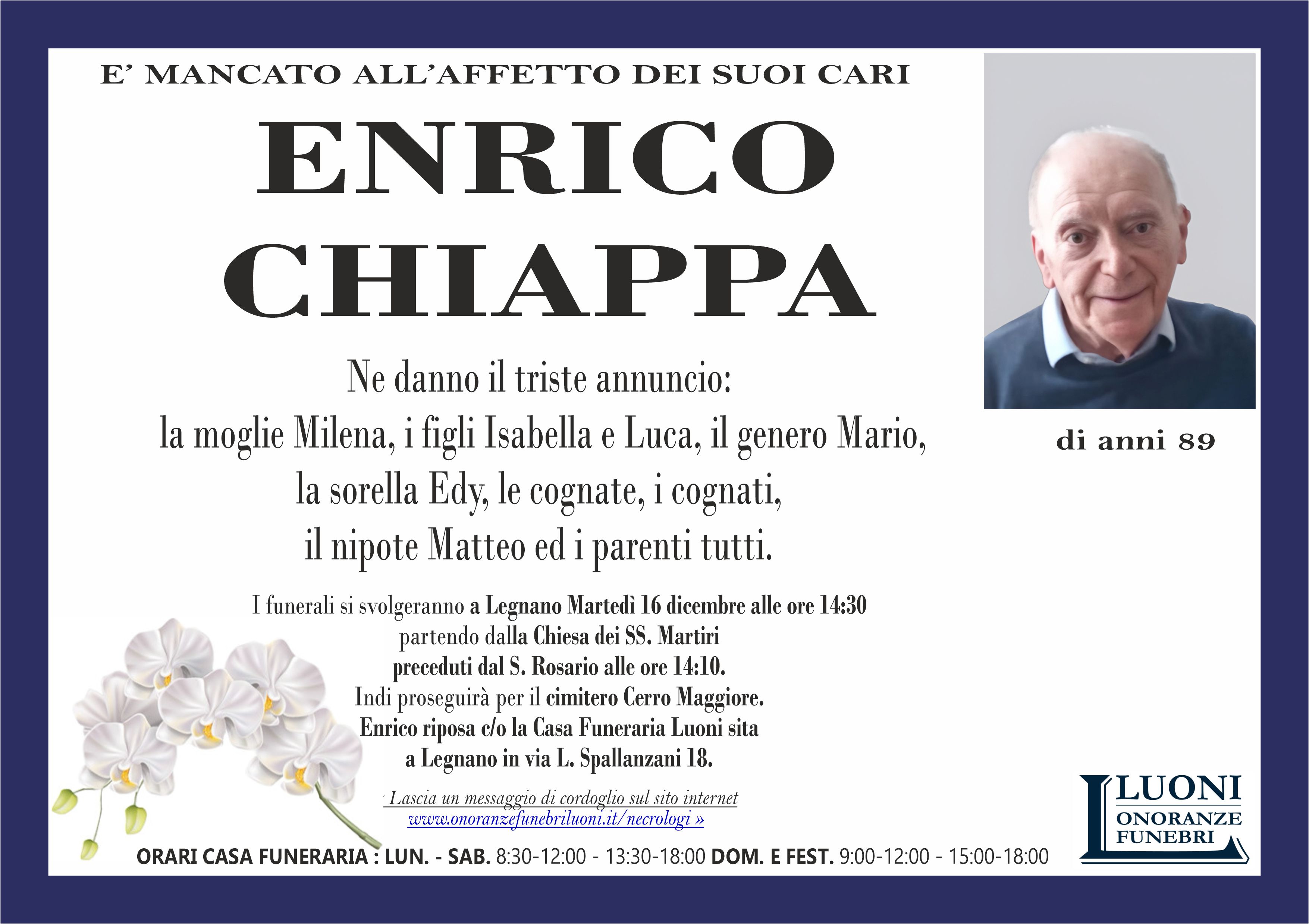 Home page \ I necrologi \ ENRICO CHIAPPA