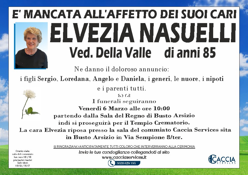 Home page \ I necrologi \ ELVEZIA NASUELLI