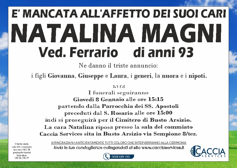 Home page \ I necrologi \ NATALINA MAGNI