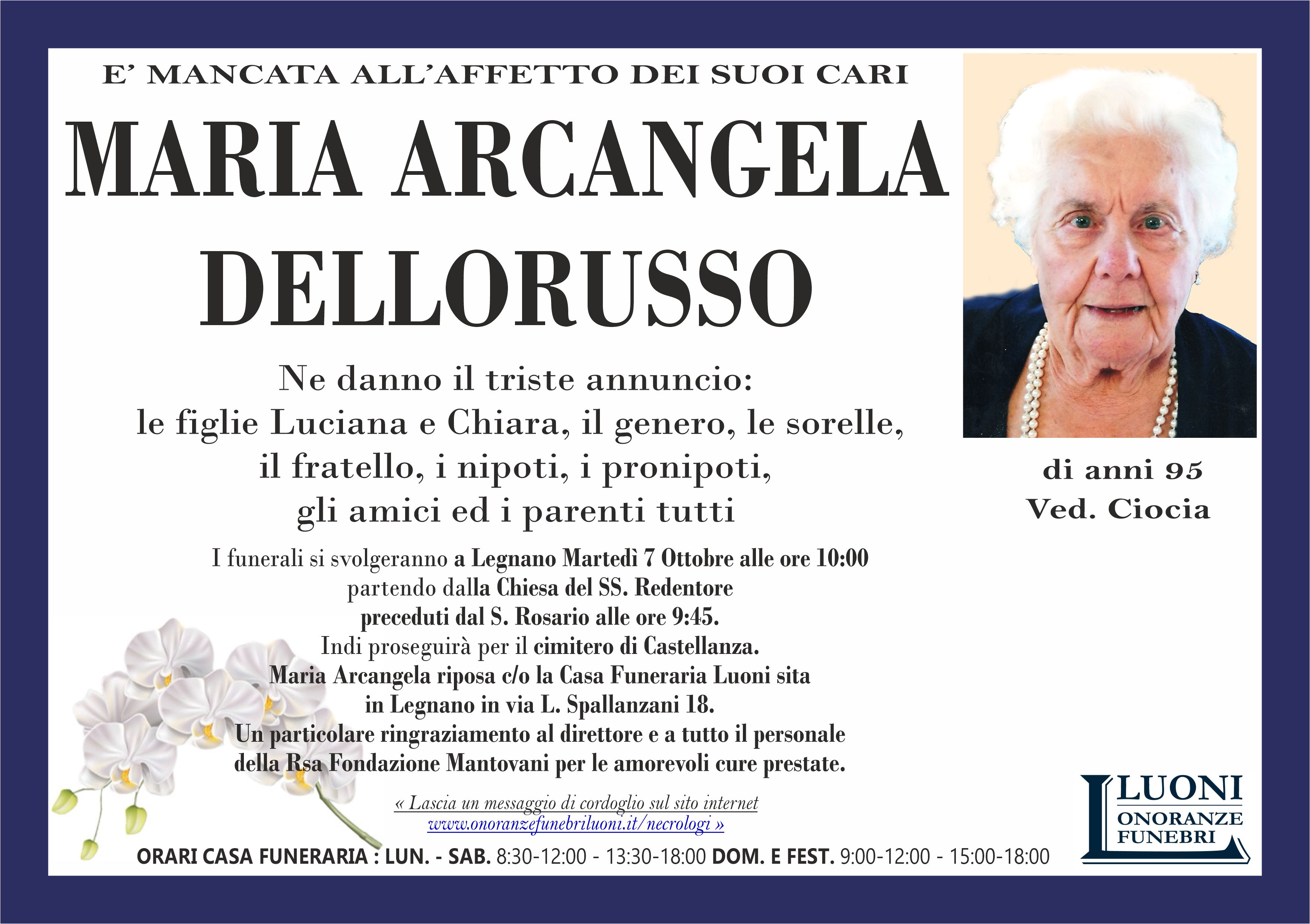 Home page \ I necrologi \ MARIA ARCANGELA DELLORUSSO