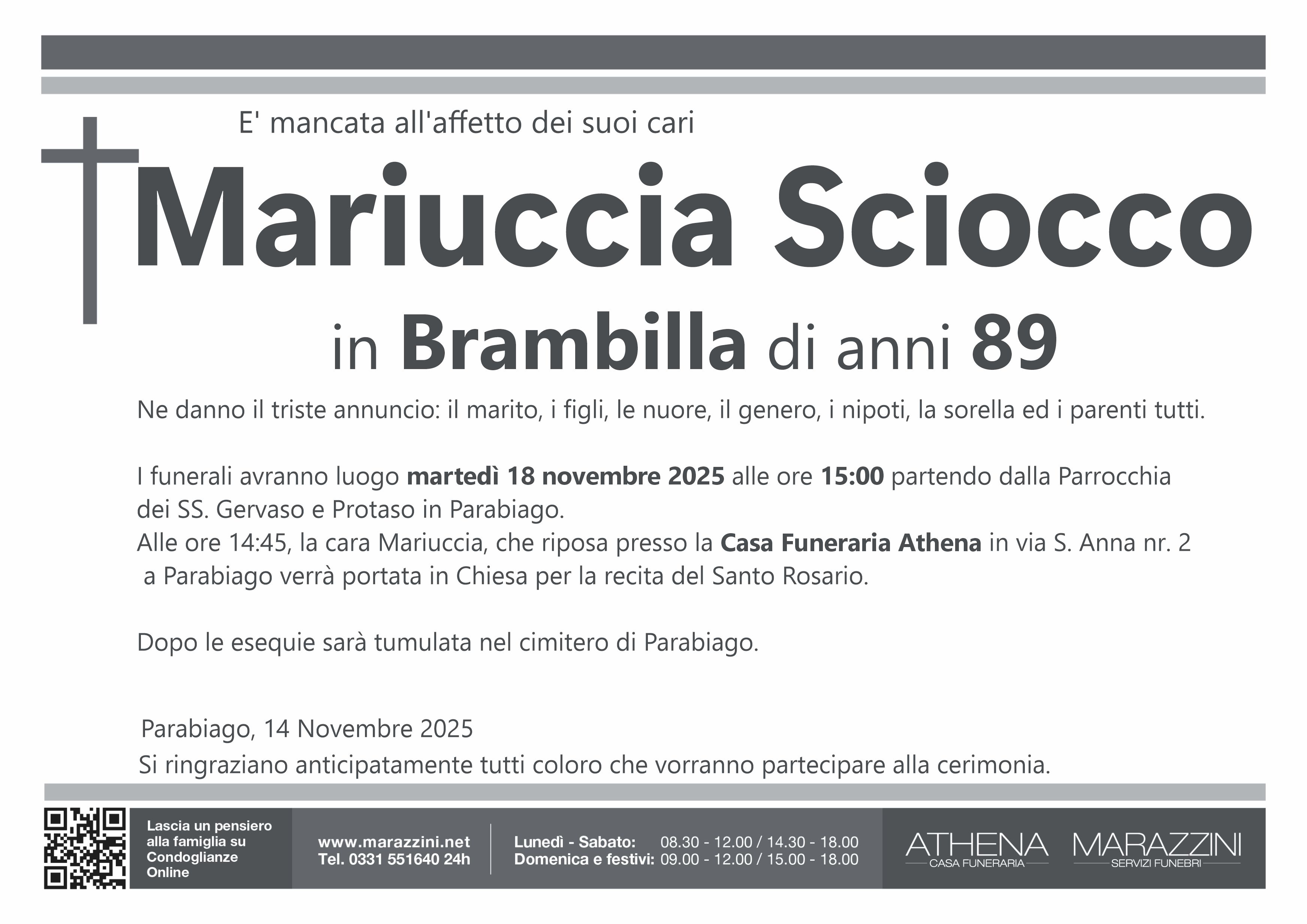 Home page \ I necrologi \ MARIUCCIA SCIOCCO