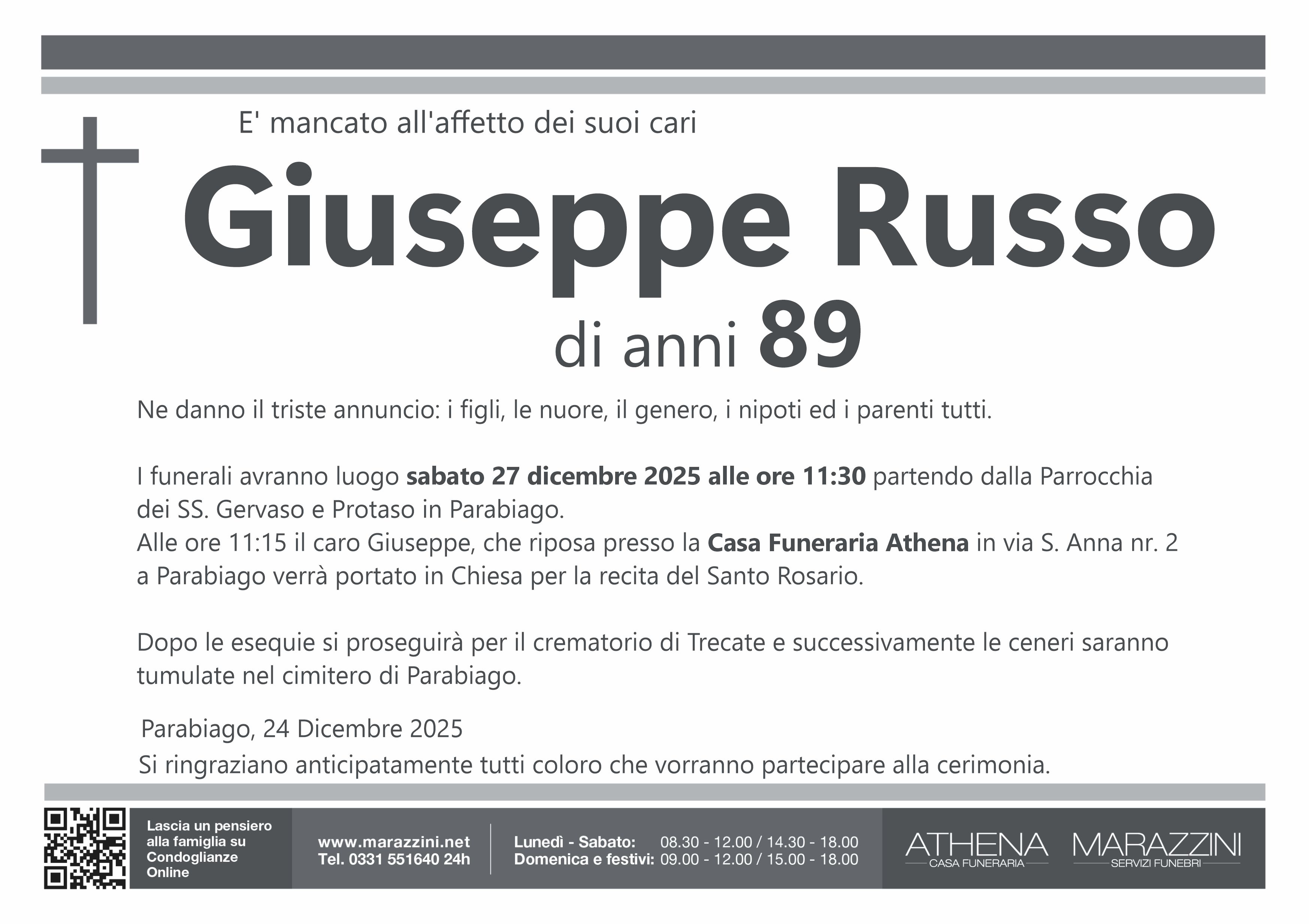 Home page \ I necrologi \ GIUSEPPE RUSSO