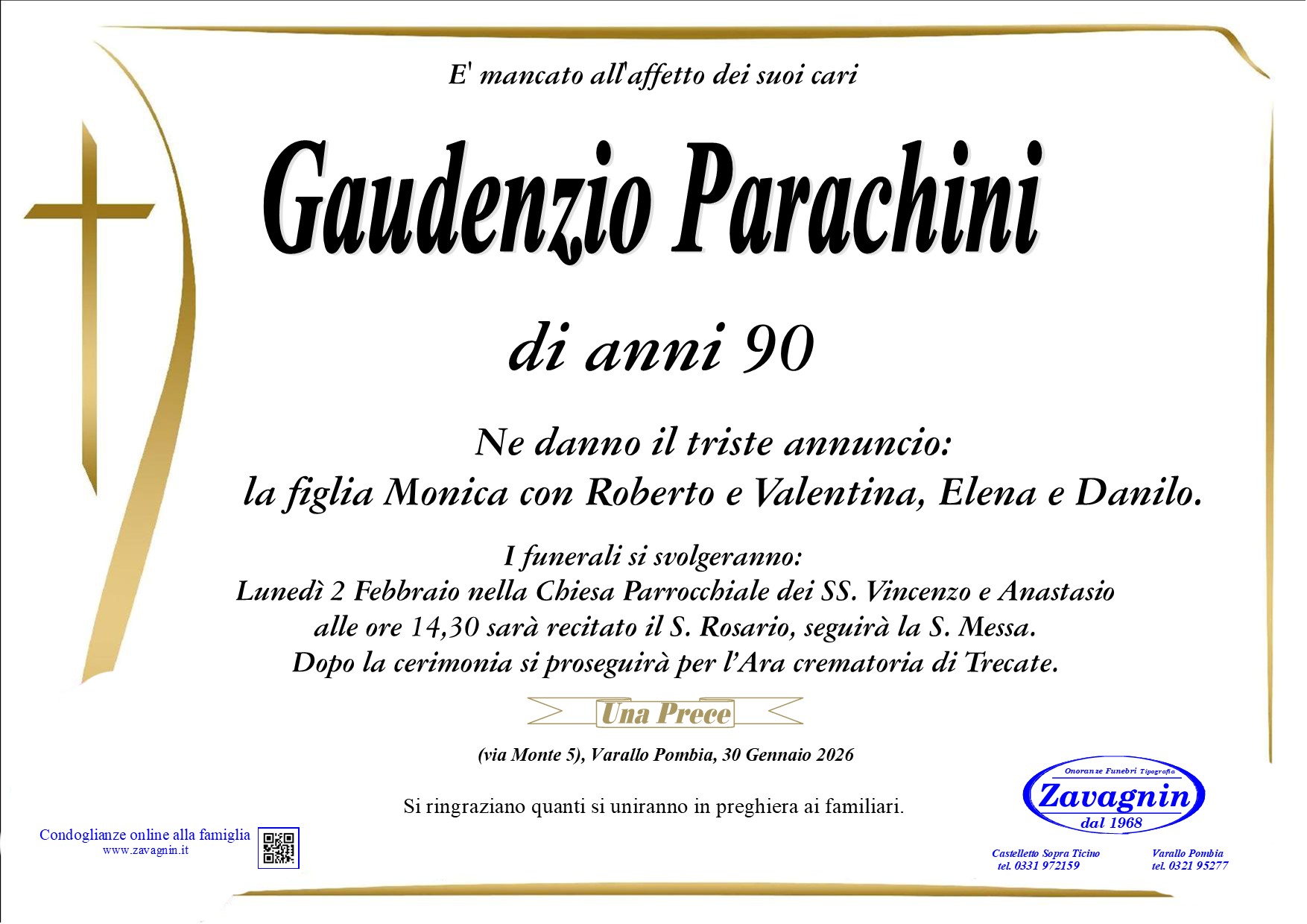 Home page \ I necrologi \ GAUDENZIO PARACHINI