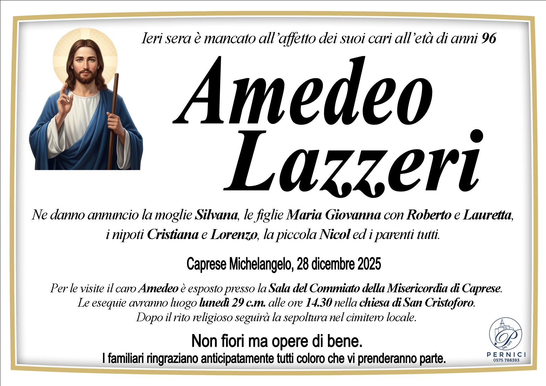 Home page \ I necrologi \ AMEDEO LAZZERI
