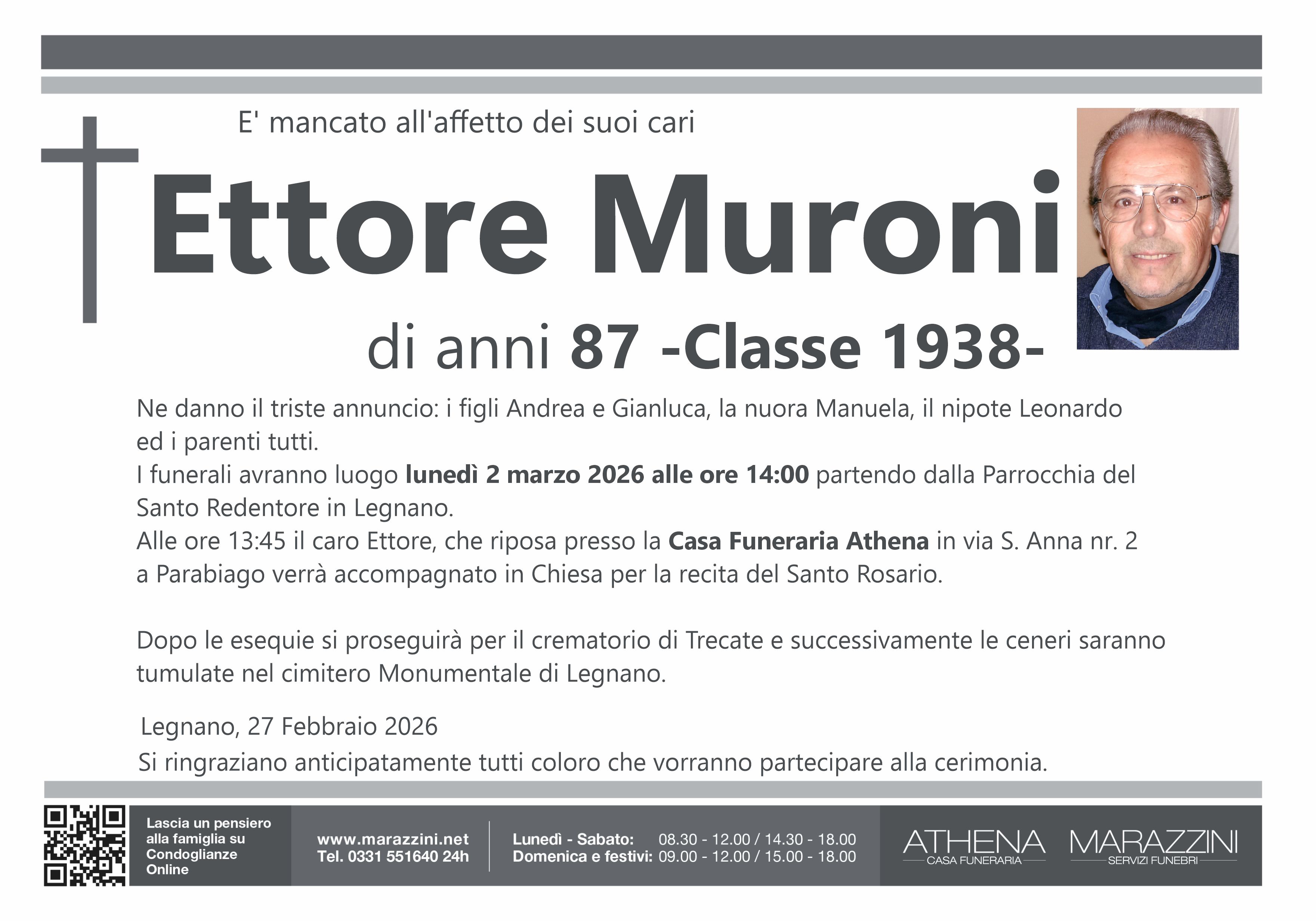 Home page \ I necrologi \ ETTORE MURONI