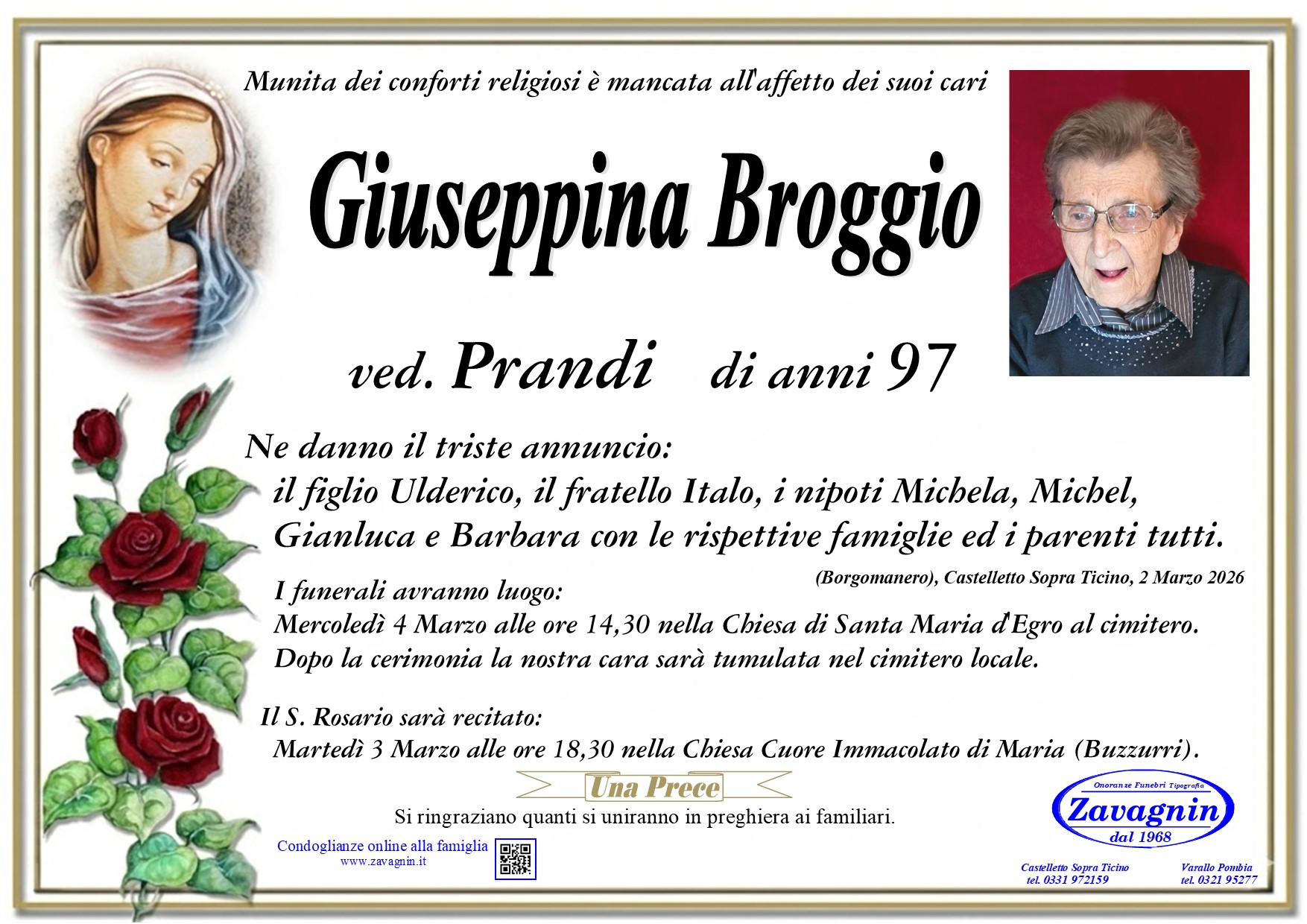 Home page \ I necrologi \ GIUSEPPINA BROGGIO
