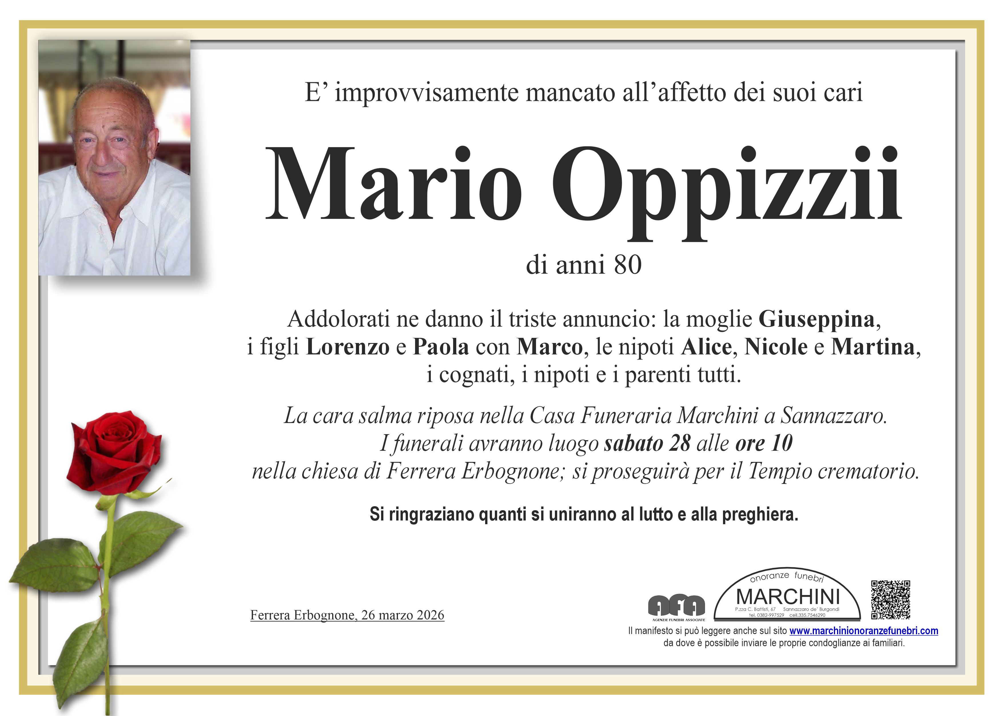 Home page \ I necrologi \ MARIO OPPIZZII